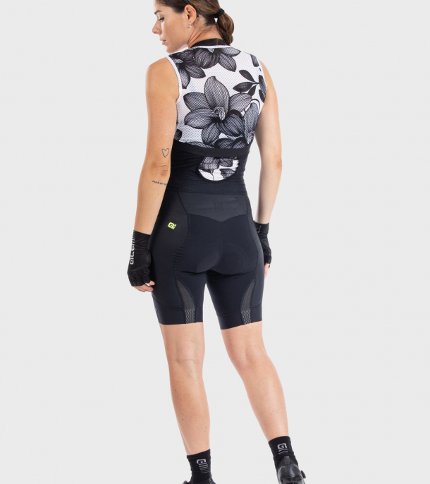 L’esclusiva interpretazione Alé di un pantaloncino dedicato al ciclismo femminile. La nuova bretella offre comfort e praticità rispondendo alla necessità di poter fare pause fisiologiche più veloci senza doversi svestire completamente. Il tessuto Speedy utilizzato nel cavallo assicura resistenza all’abrasione e traspirabilità mentre le bande laterali in Aero Flash Wave, con tecnologia Flash, favoriscono aerodinamicità e freschezza ottimali.
