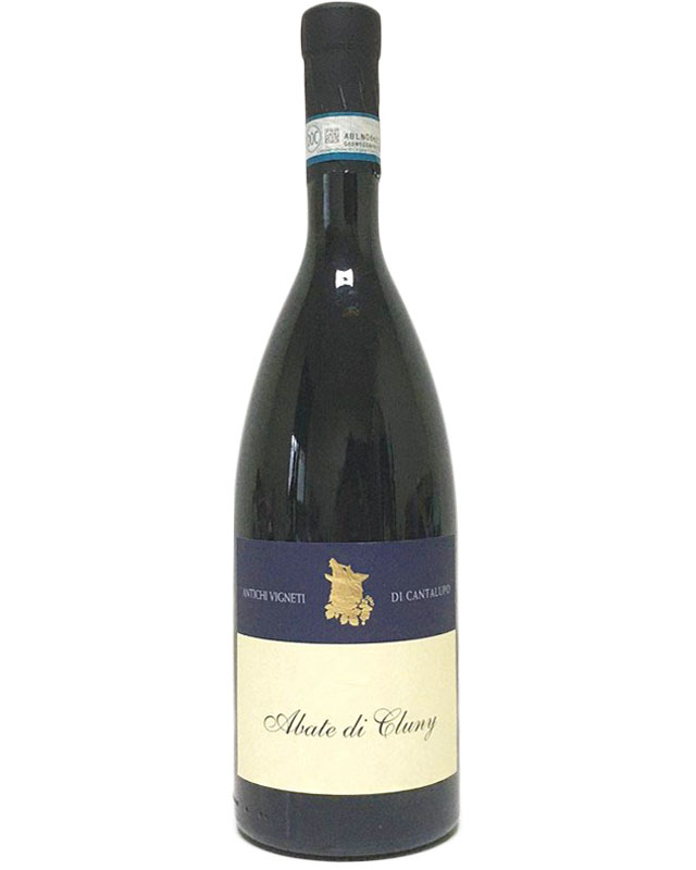 Vino Nebbiolo Colline Novaresi DOC della linea Abate di Cluny dalla cantina Antichi Vigneti di Cantalupo. L’etichetta nasce in onore del monaco che ha dato il nome al vigneto. A Ghemme erano presenti monaci provenienti dalla Borgogna che hanno iniziato questi luoghi ad una viticoltura organizzata.