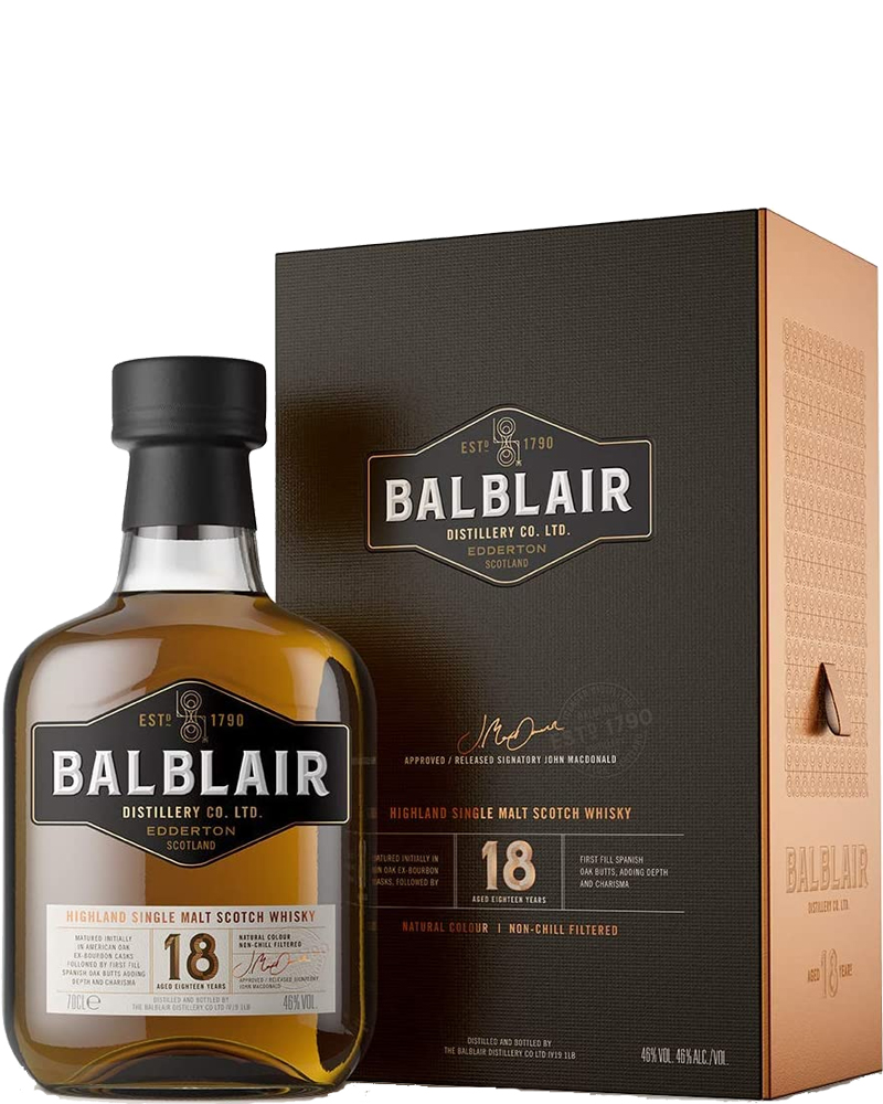 Balblair – 18 Anni, Highland Single Malt Scotch Whisky – cl 70 x 1 bottiglia vetro astucciato
