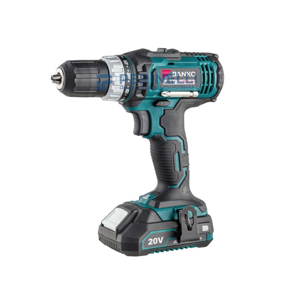 Il Trapano avvitatore Banko 00103 è fornito con batteria 20V 2,0Ah, carica batteria rapido, inserti, punte per ferro e valigetta in plastica per il trasporto.