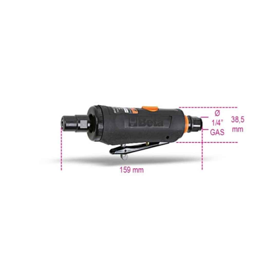 La smerigliatrice assiale pneumatica Beta 1933 è leggera e maneggevole con un corpo ed impugnatura in materiale antiscivolo e un’ottimo bilanciamento grazie a due cuscinetti a sfera. Dotata di regolazione di velocità mediante manopola con attacco aria girevole e scarico aria posteriore silenziato.