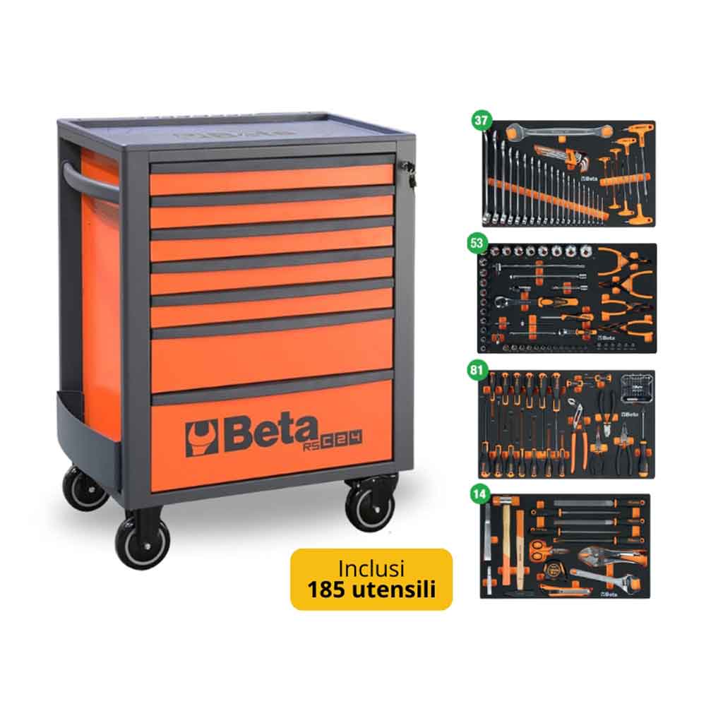 La Cassettiera mobile Beta 2400 RSC24/7-VI INDUSTRIA è un’imperdibile offerta completa composta da un carrello della linea RSC a 7 cassetti e 185 Utensili Industria ordinatamente riposti in appositi termoformati morbidi in EVA per completare l’arredamento di officine professionali e garage.