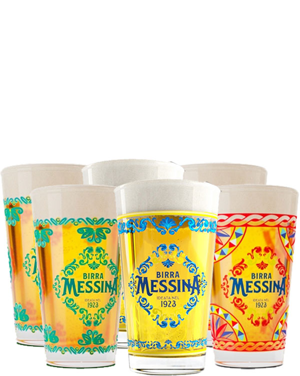 Bicchieri Birra Messina in edizione speciale a tributo delle maestranze siciliane.