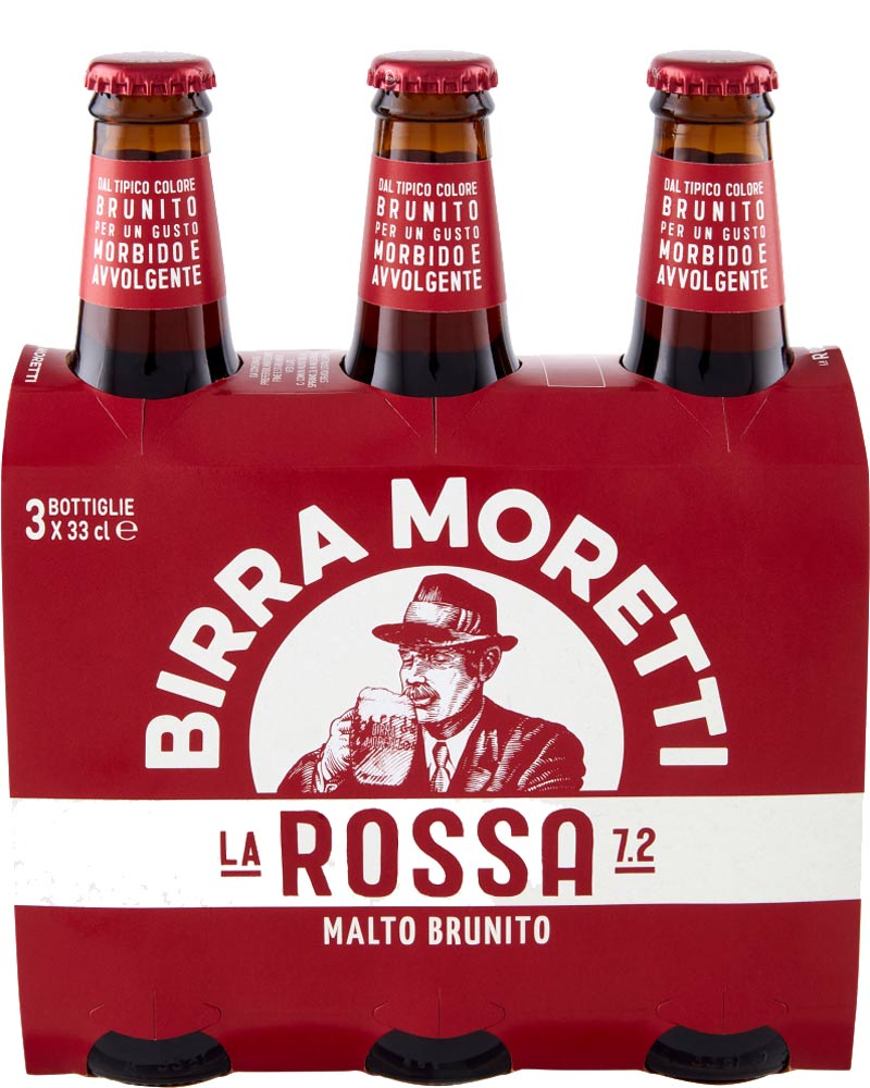 Birra rossa doppio malto italiana, realizzata da Birra Moretti con orzo trasformato in malto attraverso un procedimento a 105°C di bollitura. Il processo conferisce alla birra particolari caratteristiche speziate ed il suo colore bruno intenso da cui deriva il nome. L’etichetta simbolo di una delle più amate birre italiane nasce da una leggendaria foto scattata ad un distinto signore dai folti baffi che in cambio dello scatto chiese solo una buona birra.