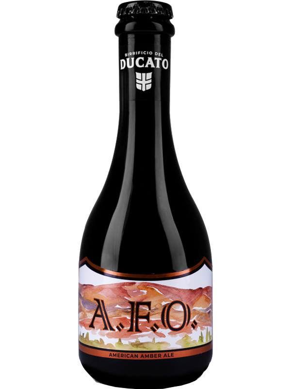 Birra ambrata American Amber Ale italiana ad alta fermentazione non pastorizzata del premiato Birrificio del Ducato, prodotta in Emilia Romagna vicino Parma con ingredienti selezionati ed una cura maniacale nella produzione. La A.F.O. (“Ale for Obsessed”) è la seconda creazione del birrificio e nasce dopo che Giovanni Campari, mastro-birraio e fondatore del birrificio, venne a contatto per la prima volta con il carattere così nuovo e irresistibile dei luppoli americani. Tornato in patria, decise di realizzare la Ale dei suoi sogni, che esprimesse un bouquet complesso, affascinante ma mai consueto. Per farlo, viaggiò tra Inghilterra e Germania, visitando i coltivatori di luppolo e sperimentando varietà anche molto lontane, portando avanti una ricerca nel territorio olfattivo dei luppoli che si è infine concretizzata nell’attuale A.F.O