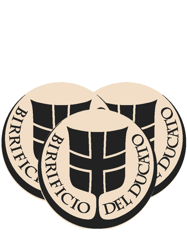 Sottocoppe originali di Birrificio del Ducato nel pacco da 100 pezzi.