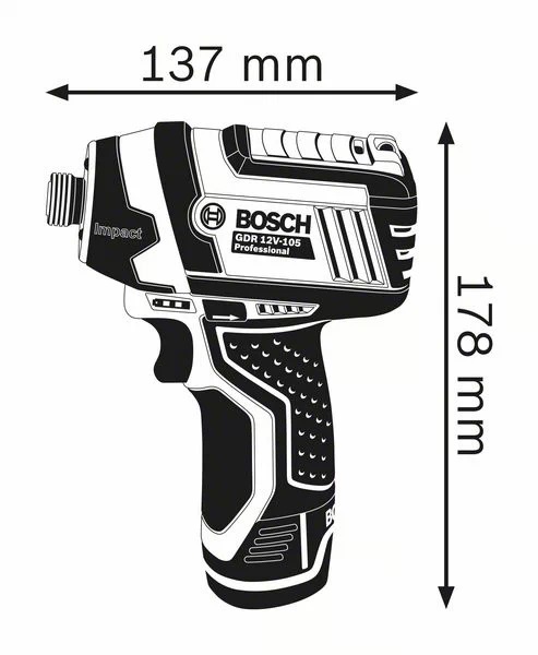 - Con i suoi soli 137 mm ha la forma più compatta nella classe di tensione da 12 V, per una maneggevolezza ottimale soprattutto nei lavori di avvitamento in luoghi difficilmente accessibili e nei lavori sopra testa