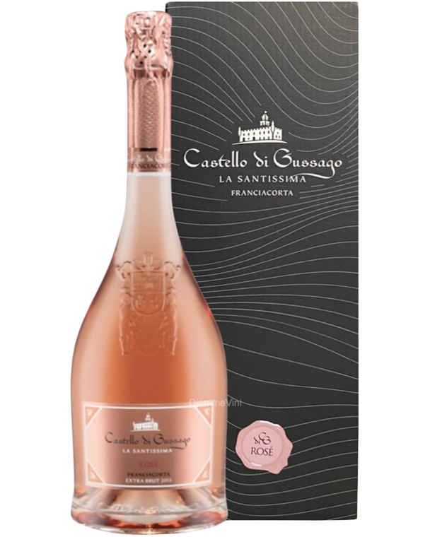Vino spumante Franciacorta Rosé realizzato con 100% uve Pinot Nero dalle cantine Castello di Gussago. Le uve sono vendemmiate a mano e riposte in cassette da 18 kg, per preservare i grappoli perfettamente integri durante il trasporto alla cantina, sono caricate in una speciale pressa che esegue una spremitura soffice progressiva, allo scopo di estrarre la parte migliore del succo: il mosto fiore. Dotato di certificazione BIOLOGICO Utilizzando solo le tecniche Bio coltivando senza usare molecole di sintesi ma solo sostanze di origine naturale.