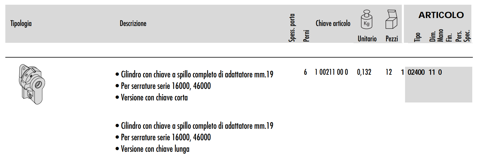 CISA 02400 CILINDRI STANDARD DA APPLICARE CILINDRO CON CHIAVE A SPILLO 6 PERNI