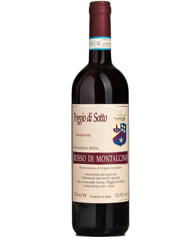 Vino rosso di Montalcino DOC Biologico, prodotto da Poggio di Sotto utilizzando uva Sangiovese in purezza. Tradizionale e ricco di profumi fruttati e speziati, con un gusto delicato e morbido. Perfetto con piatti di carne rossa, selvaggina e polenta.