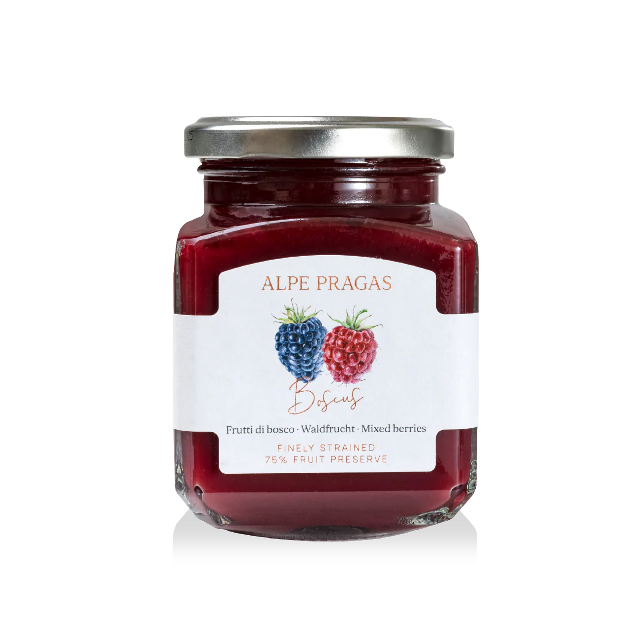 Ingredienti – Frutti di bosco (75%) (mirtilli*, lamponi, ribes rosso e nero), zucchero, succo di limone, gelificanti: pectine (da mela) – (*da raccolta selvatica