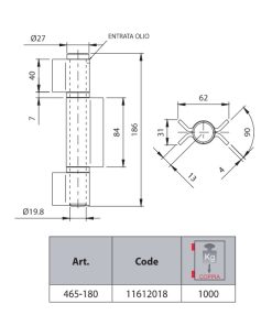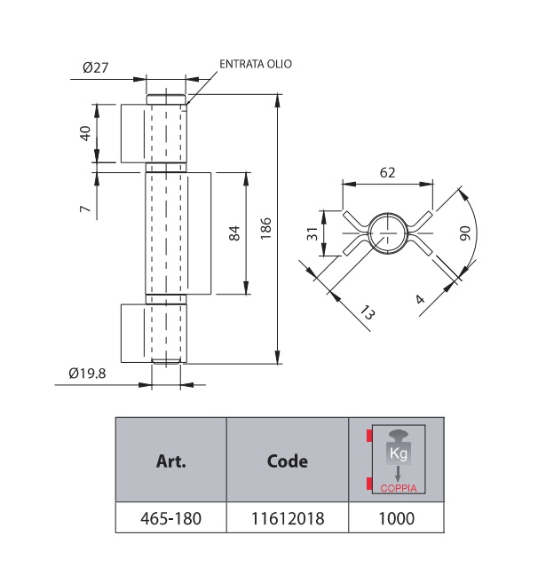 COMUNELLO 465-180 CERNIERONA 3 ALI APERTE PERNO SFILABILE CON CUSCINETTO