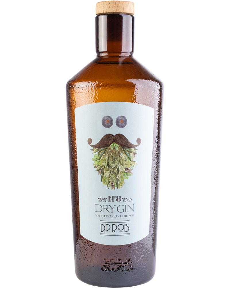Distilled Dry Gin di Dr Rob aromatizzato con basilico, timo e rosmarino. Fresco e aromatico, con un gusto tipicamente mediterraneo.