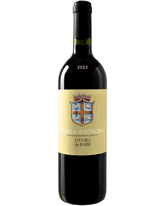 Rosso di Montalcino DOC di Fattoria dei barbi, realizzato con uve Sangiovese da vitigni giovani che conferiscono al vino un gusto fresco e meno impegnativo del brunello. Ideale con primi piatti di carne e arrosti.