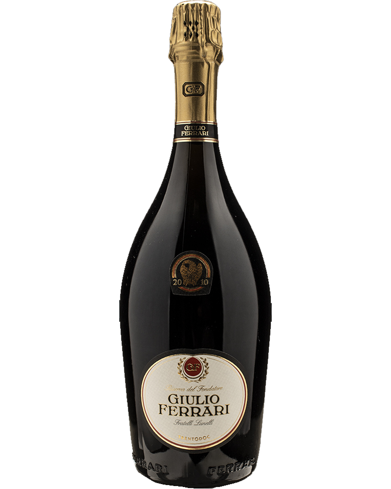 Spumante metodo classico d’autore diventato leggenda nella sua edizione riserva. Viene assemblato in purezza con uve Chardonnay al 100% del vitigno Maso Pianizza esposto a 500-600 metri a sud-ovest nel comune di Trento, Trentino Alto Adige. Il Ferrari Giulio Ferrari Riserva del Fondatore si fregia del riconoscimento DOC. Le cantine Ferrari nascono dal sogno dell’enologo Giulio Ferrari di creare in Italia un vino sulla scia dello Champagne francese. La produzione annua era di pochissime bottiglie dal costo proibitivo, ma nel 1952 la cantina fu rilevata dal venditore di vino locale Bruno Lunelli. La capacità enologica di Ferrari e le abilità imprenditoriali di Lunelli decretarono il successo dell’azienda che incrementò la produzione a 100 mila bottiglie annue. Ancora oggi la cantina Ferrari realizza esclusivamente Spumanti Metodo Classico. Nato nel 1972 e da allora ha conquistato innumerevoli premi sia in Italia che all’estero in quanto simbolo dell’eleganza made in Italy.