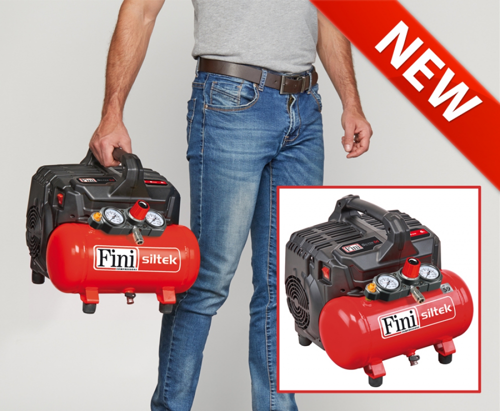 FINI SILTEK S/6 COMPRESSORE ARIA SILENZIATO 59Db ELETTRICO PORTATILE 6 L 8 BAR