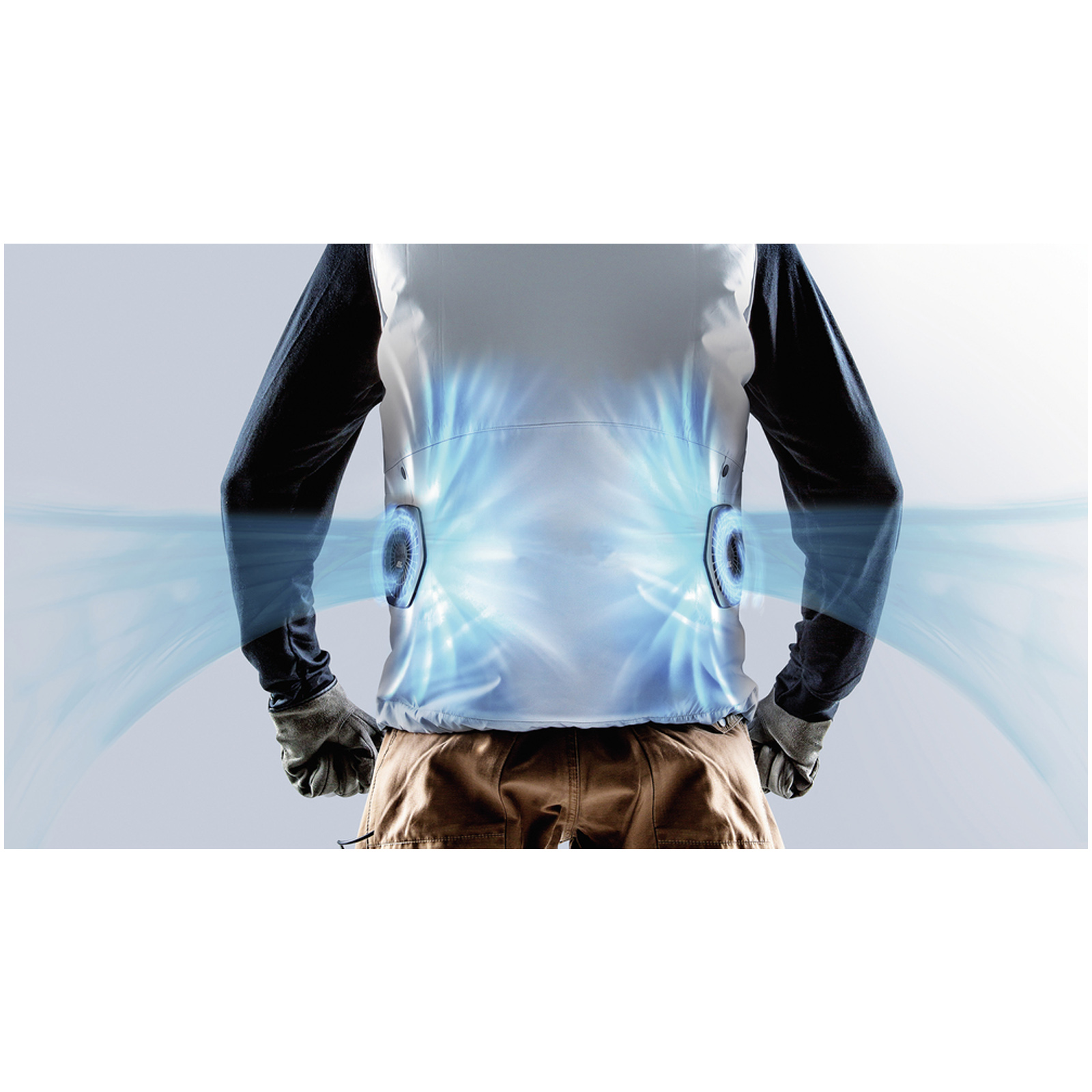 Dotato di due ventole integrate, il gilet crea un flusso d’aria che aiuta a far evaporare rapidamente il sudore, mantenendo una temperatura corporea ottimale e migliorando il comfort durante tutta la giornata lavorativa.