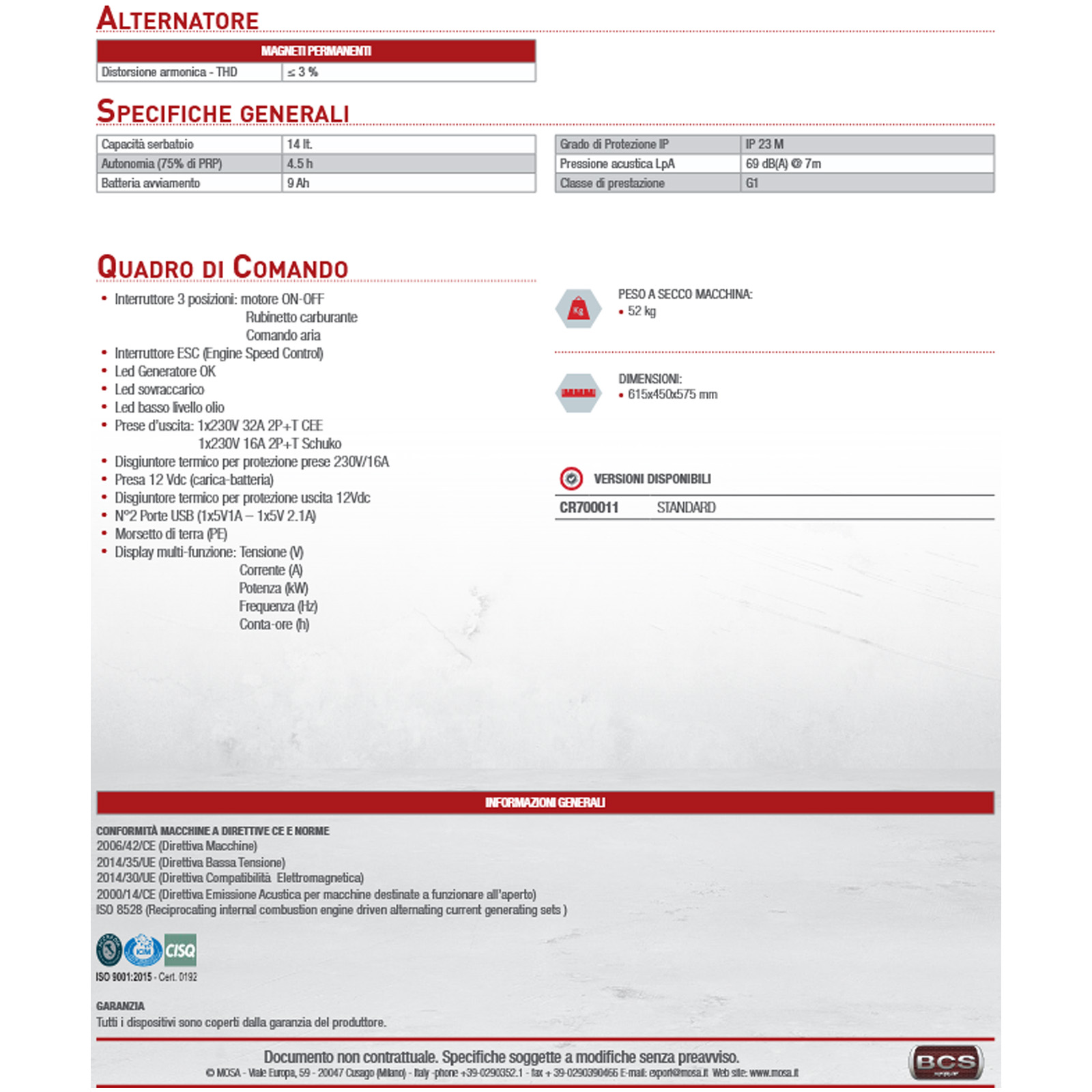 Il Mosa GE 7000 MI è la soluzione ideale per chi vuole potenza, affidabilità e silenziosità in un unico dispositivo.