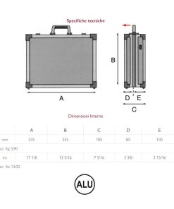 GT Line ALC/170 è progettata con maniglia cromata con grip in gomma, profilo in alluminio per una chiusura ancora più affidabile, 2 serrature in acciaio cromato, fondo portaoggetti termoformato a 3 scomparti fissi, 3 cerniere in acciaio cromato ad alto spessore, cinghia per il trasporto a spalla e Tasca porta documenti.