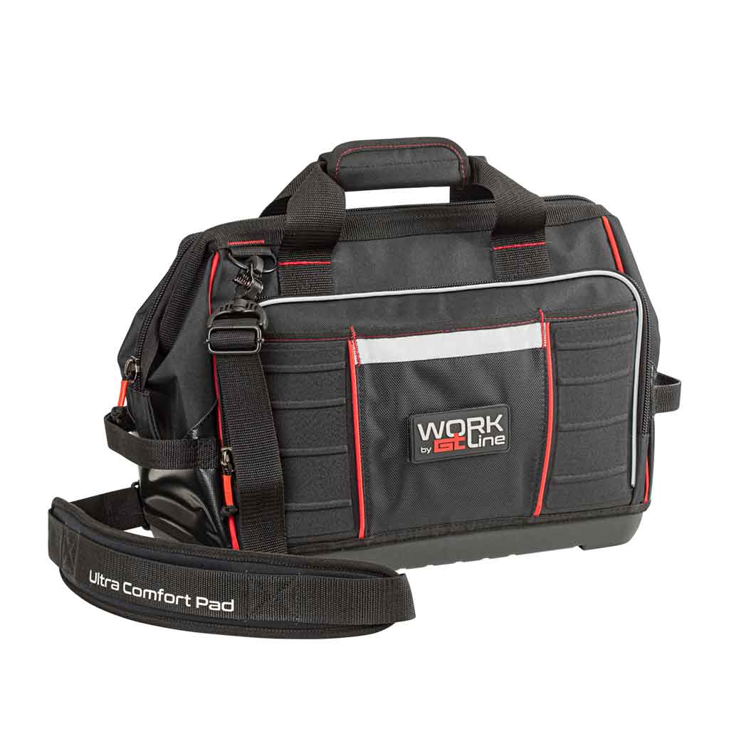 GT Line TOP 04 R è una borsa porta utensili con tasche imbottite e tracolla regolabile con un resistente fondo rigido antiurto.