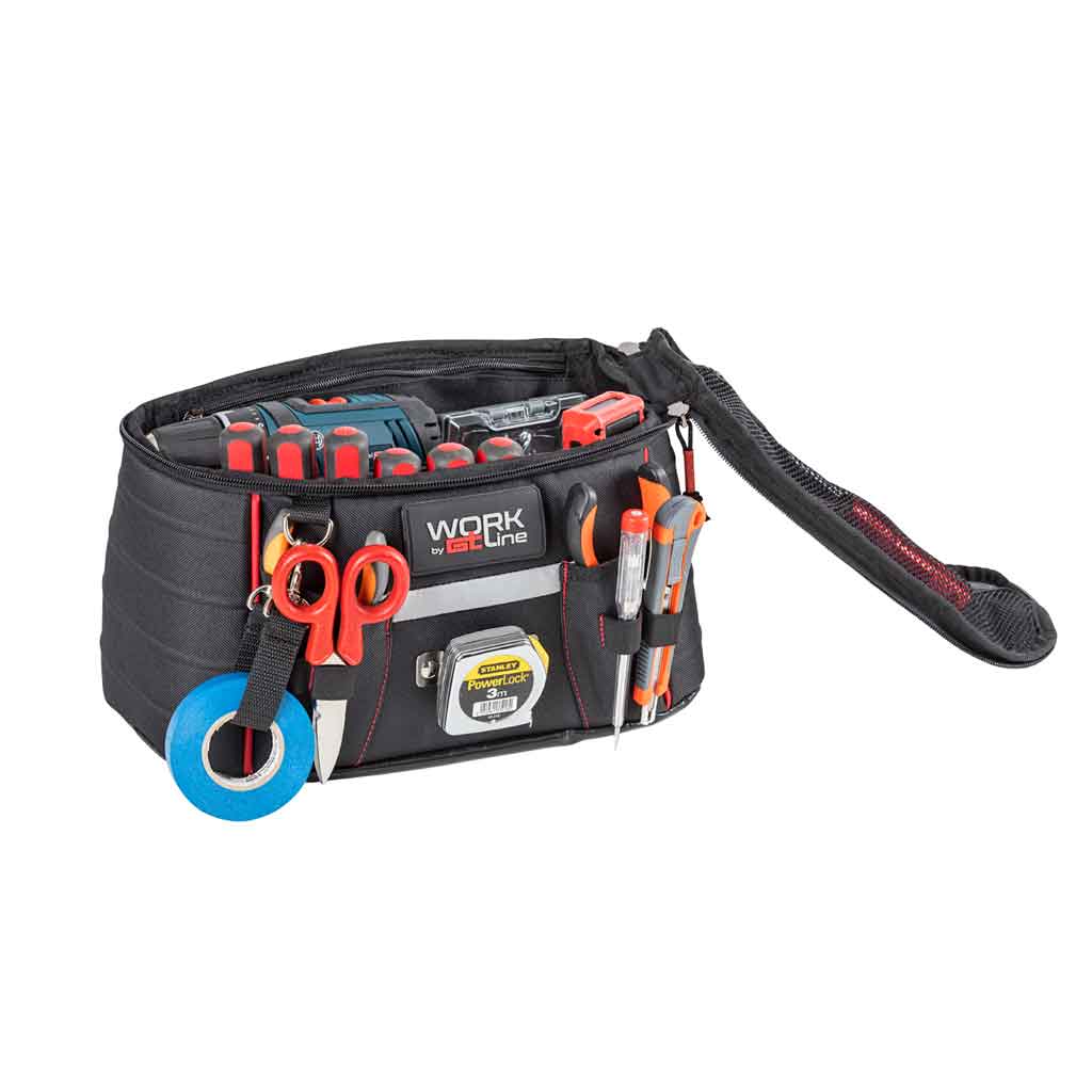 GT Line TOP BUMBAG R è un marsupio da cintura per utensili regolabile in cintura con pettorina ripiegabile all’interno. L’area interna è composta da tasche imbottite per utensili.