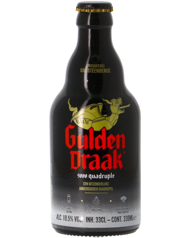 La Gulden Draak 9000 Quadruple è la versione “rinforzata” della Classica Gulden Draak prodotta sempre dal birrificio belga Van Steenberge. Questa Quadruple è una birra ad alta fermentazione ricca e complessa prodotta utilizzando tre tipi differenti di malto. Nel bicchiere si presente con un colore ambrato con riflessi dorati. Al naso presenti aromi fruttati e un bouquet floreale molto ampio. Il gusto è caldo, deciso e alcolico nel primo impatto con un finale persistente e delicatamente luppolato. La Gulden Draak 9000 è una birra che riesce a soddisfare anche i palati più esigenti e nonostante la sua alta gradazione alcolica risulta abbastanza facile da bere.