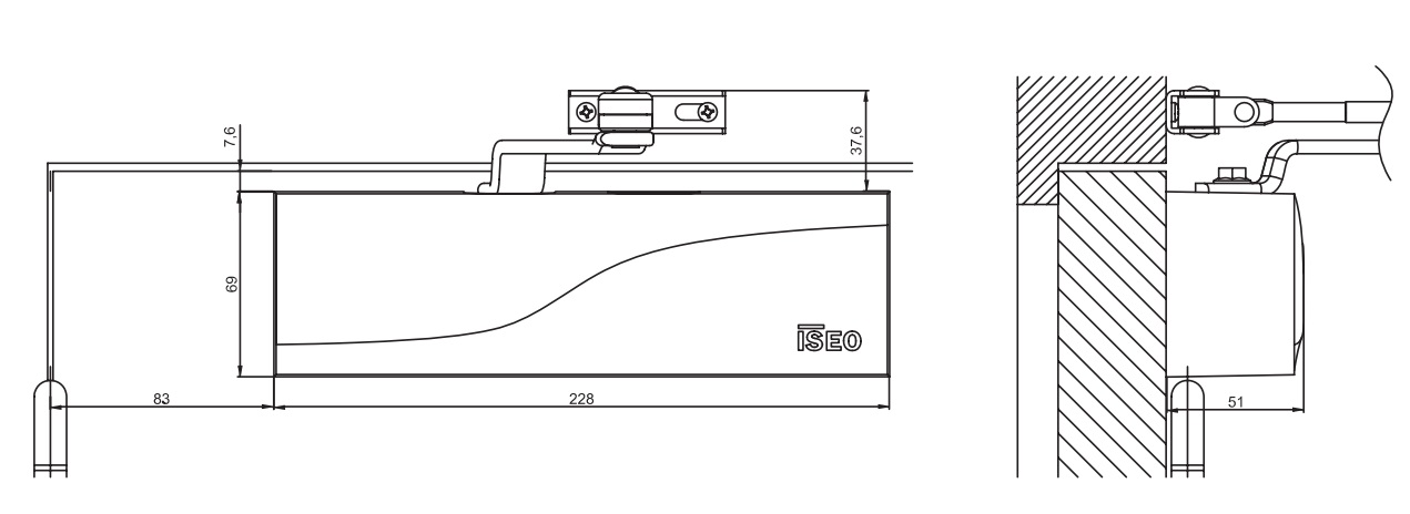 Il chiudiporta con braccio a compasso IS60 è un chiudiporta aereo ideale per la maggior parte delle porte in commercio (legno, metallo, alluminio, etc.) e installabile anche sulle porte tagliafuoco. Ha una forza regolabile per posizionamento da 2 a 4.