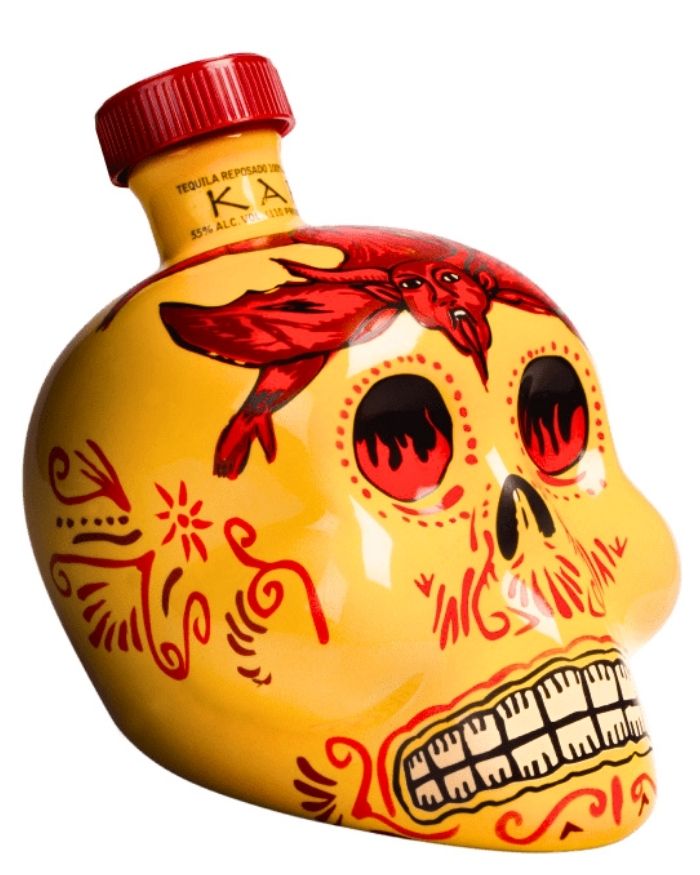 Tequila Reposado Kah spicca per il design iconico delle bottiglie ispirate al Día de los Muertos. La bottiglia è decorata come un teschio messicano, un richiamo alla tradizione e alla celebrazione della vita, rendendola immediatamente riconoscibile e affascinante. La tequila è prodotta in Messico utilizzando agave blu weber di alta qualità, e matura per almeno due mesi e fino a un anno in botti di legno, spesso di quercia.