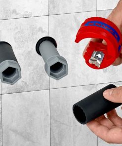 Knipex BiX funziona anche come utensile di taglio per manicotti antigoccia e di tenuta. Taglia i manicotti in modo semplice e rapido con circa 2-3 mm di distanza dalla parete. Manicotti di tenuta contribuiscono a mantenere le pareti asciutte: evitano che l’acqua si infiltri nella parete e drenano dalla parete l’umidità causata da possibili perdite nei collegamenti dell’acqua.