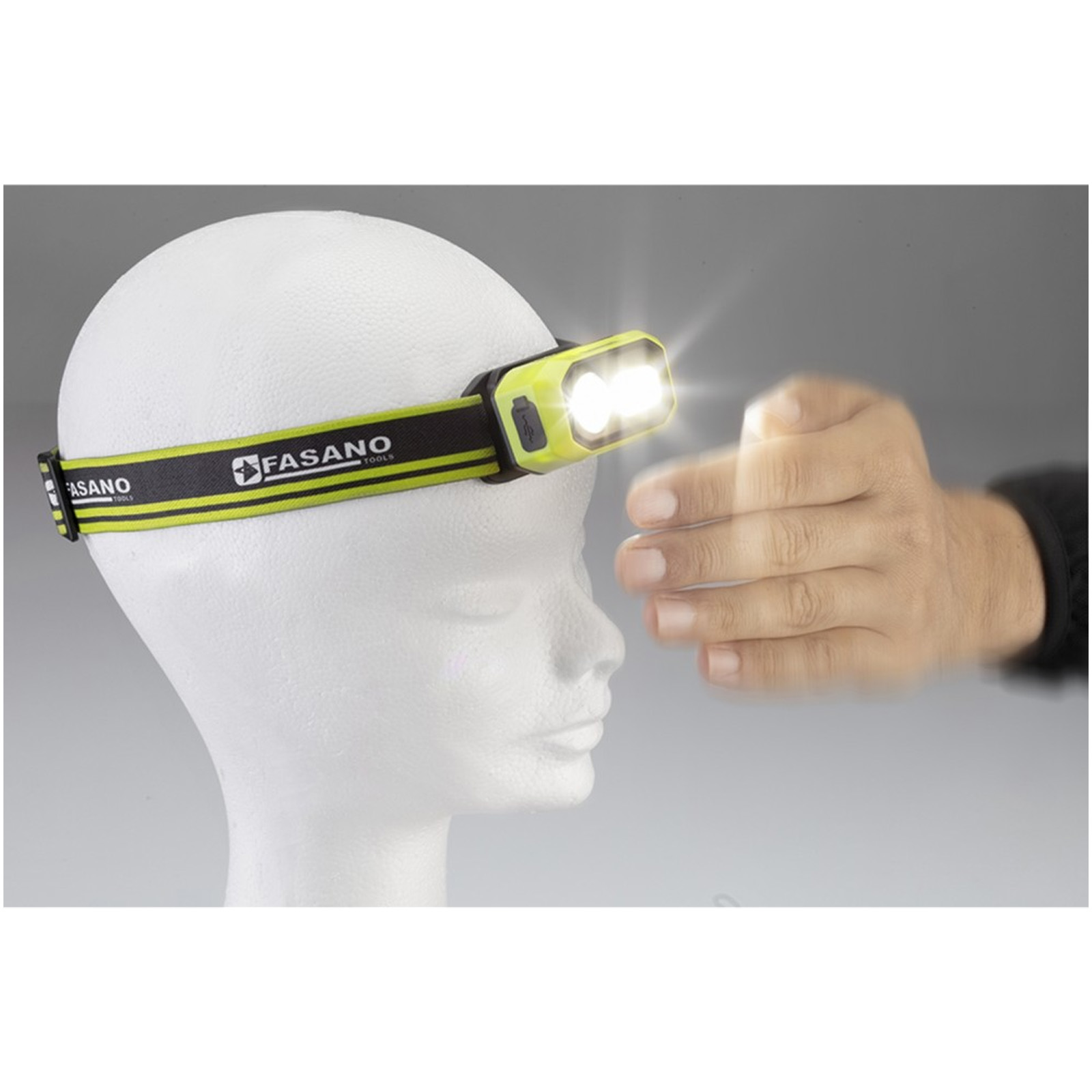 La lampada frontale a doppio led della Fasano Tools Con sensore on/off contactless.