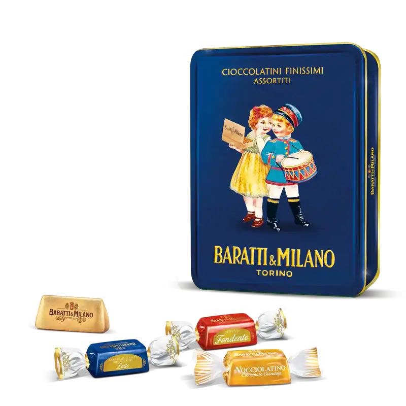 La Latta Storica Gran Assortimento, disponibile in colore blu e in colore bordeaux, è un omaggio alla tradizione e alla qualità di Baratti & Milano. Questa elegante latta, dal design ispirato alla storia dell’Azienda, contiene un assortimento di cioccolatini finissimi: praline ripiene al latte e alla crema fondente, gianduiotti e il Nocciolatino Gianduja doppio fiocco, che celebrano l’eccellenza della cioccolateria piemontese. Ogni cioccolatino è realizzato con ingredienti selezionati e un’attenta lavorazione artigianale, per offrire un’esperienza di gusto intensa e raffinata. Perfetta come regalo o come dolce pensiero da condividere, questa latta unisce eleganza e tradizione.