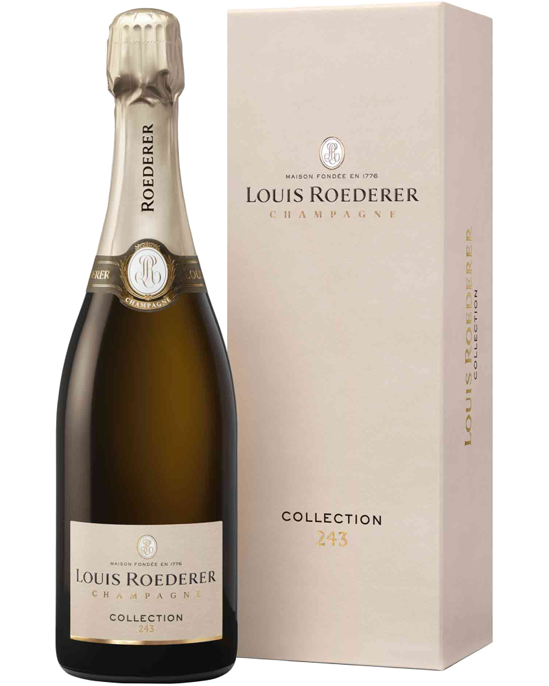 Champagne Brut Cuveè speciale di Louis Roederer per la 243°esima edizione. Il vino viene realizzato a partire dalla Réserve Perpétuelle e dai vini di riserva affinati in legno, completati dal meglio della vendemmia 2018, la cuveé Collection 243 è ancorata alle nostre radici nella Champagne e alle fondamenta della nostra Maison di Reims. Questo champagne epicureo è il grande vino multi-millesimato della Maison. Il numero di Collection, indica il numero di assemblaggi fatti dalla nascita della Maison Louis Roederer, permettendo così a tutti gli appassionati di scegliere il proprio vino a seconda del grado di giovinezza o di maturità che desiderano e apprezzano.