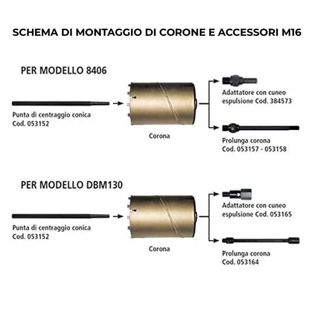Makita 053164 è adatta per le corone con attacco M16x2 per carotatrici a secco Makita DBM130,DBM080 con attacco M18.
