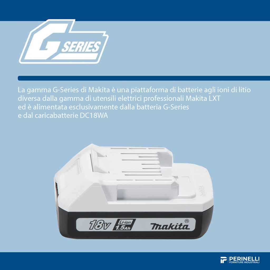 Tempo di ricarica circa 70 minuti con caricabatterie DC18WA serie G.