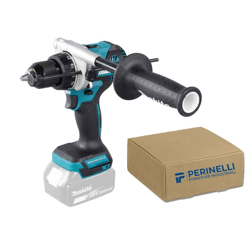 Makita DHP486Z include gancio cintura, inserto, Asta profondità, Impugnatura laterale completa.