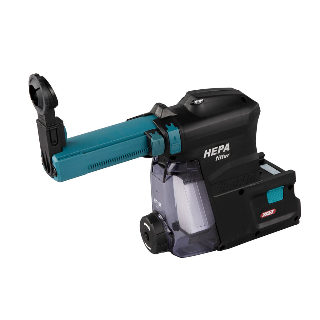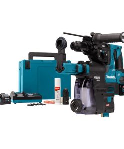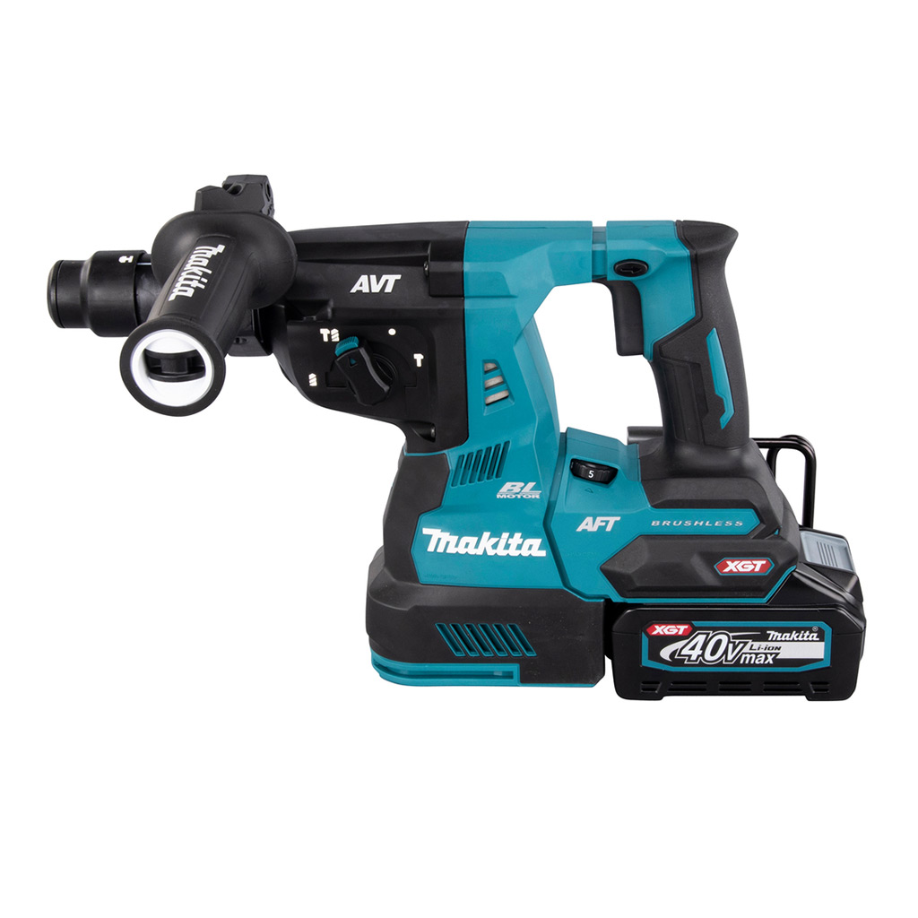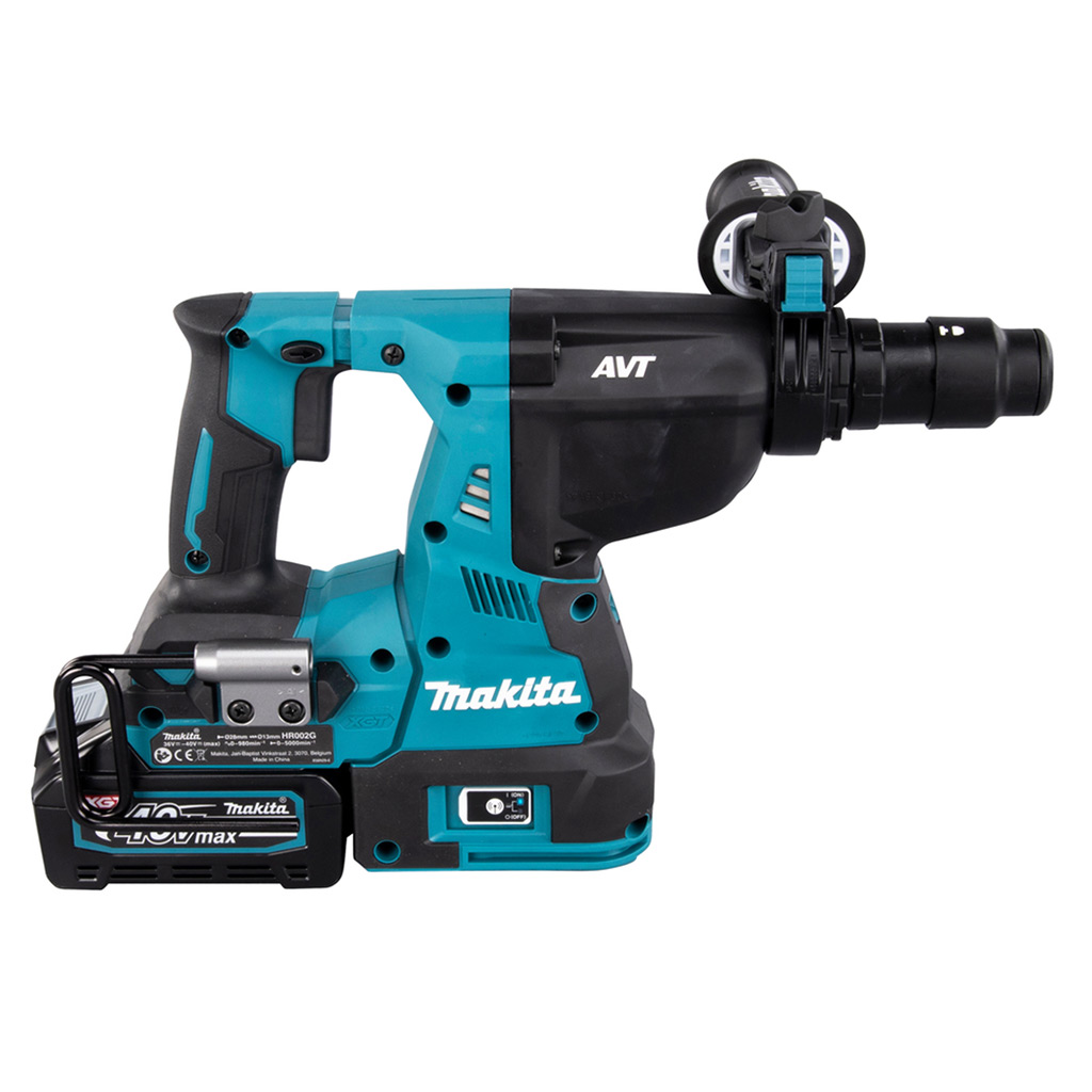 Il tassellatore 40v Makita HR002GM204 è fornito con mandrino sds-plus, mandrino sds, impugnatura laterale, asta di profondità, 2 batterie BL4040, caricabatterie DC40RA, sistema attivo recupero polveri DX14, unità bluetooth e valigetta makpac tipo 4.