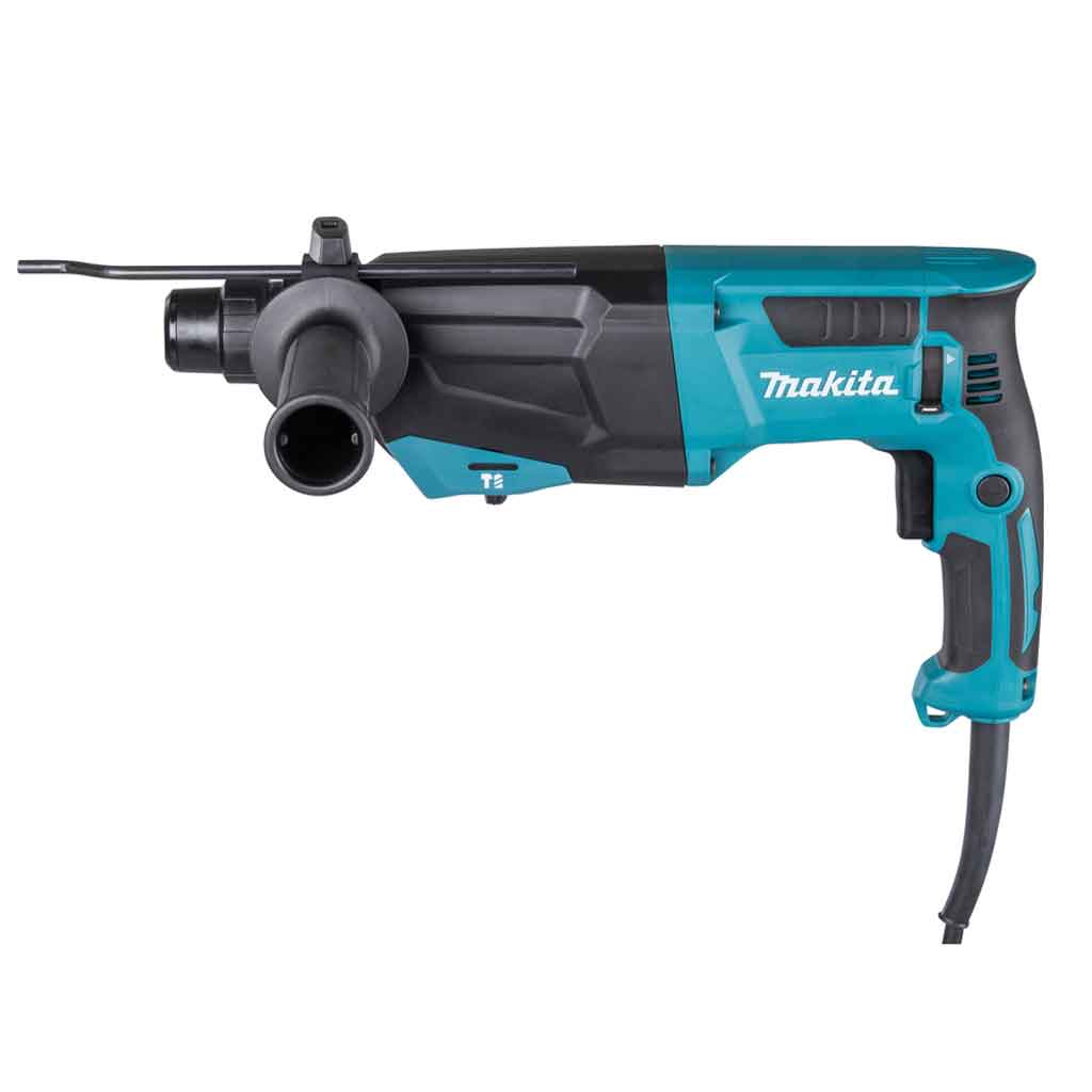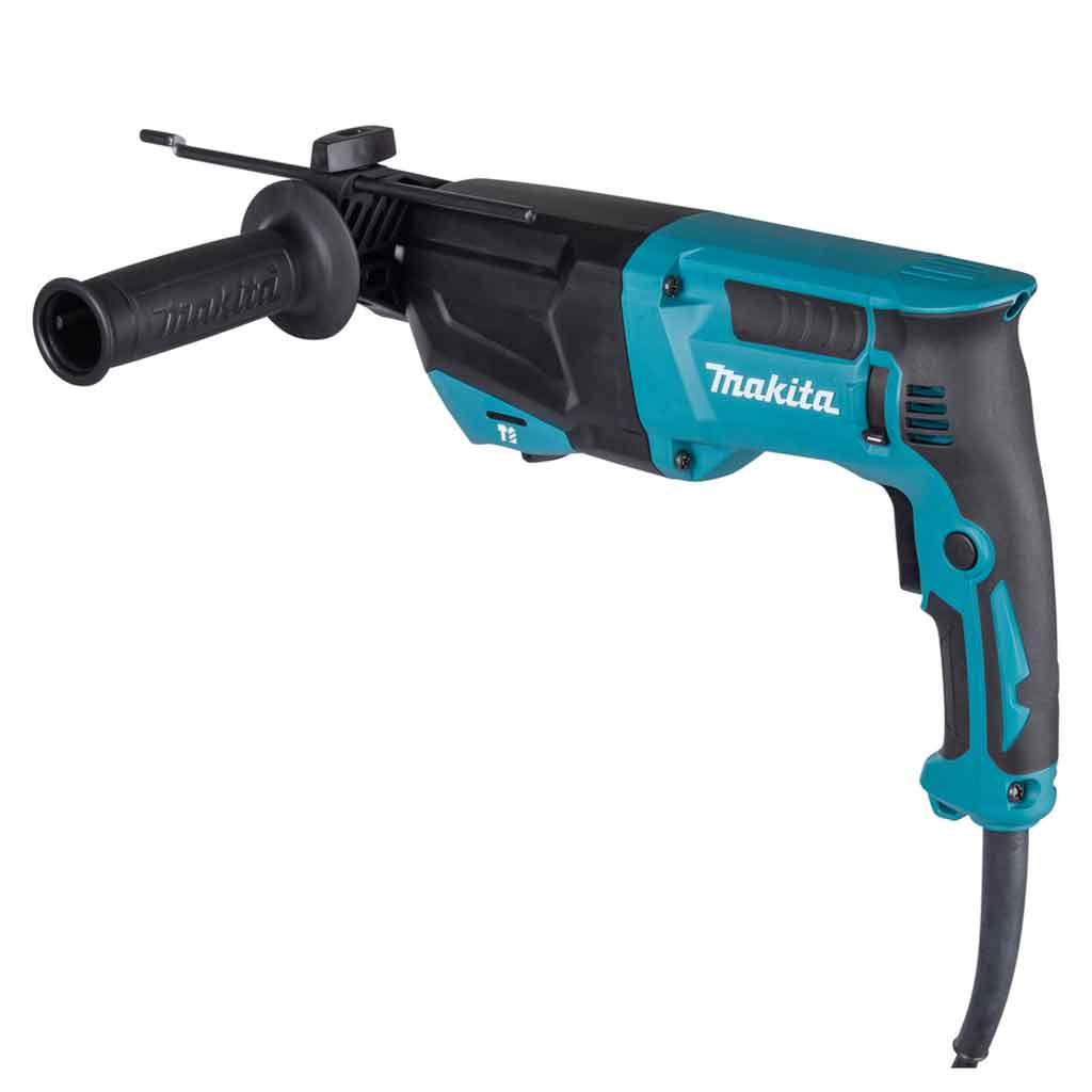 Makita HR2670 include impugnatura laterale, asta di profondità e valigetta.