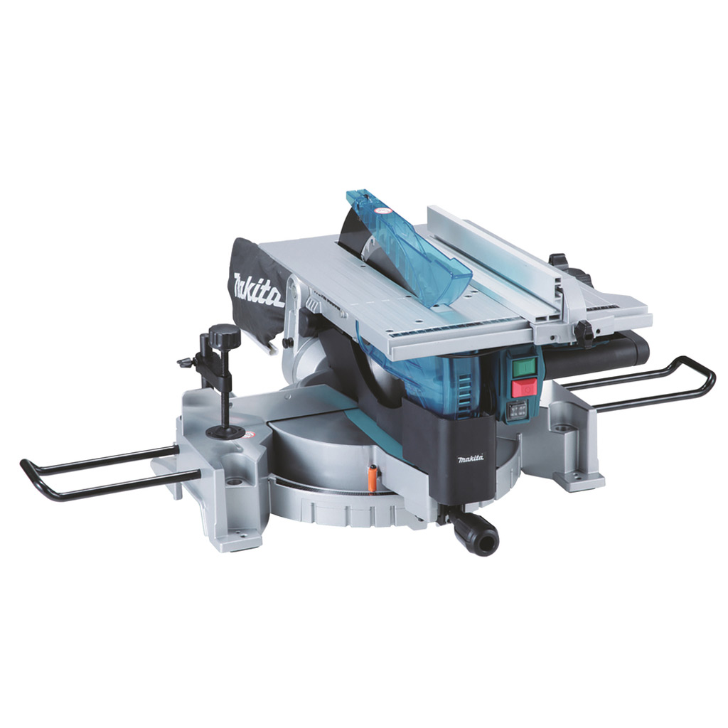La sega da banco Makita LH1201FL , utilizzabile sia a troncare che per tagli a sfilare, monta lame da 305 mm permettendo una capacità di taglio di 95 mm a troncare e 52 a sfilare.