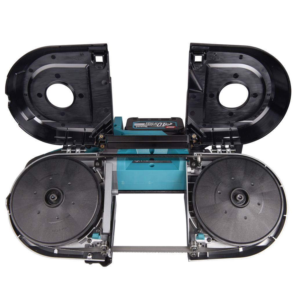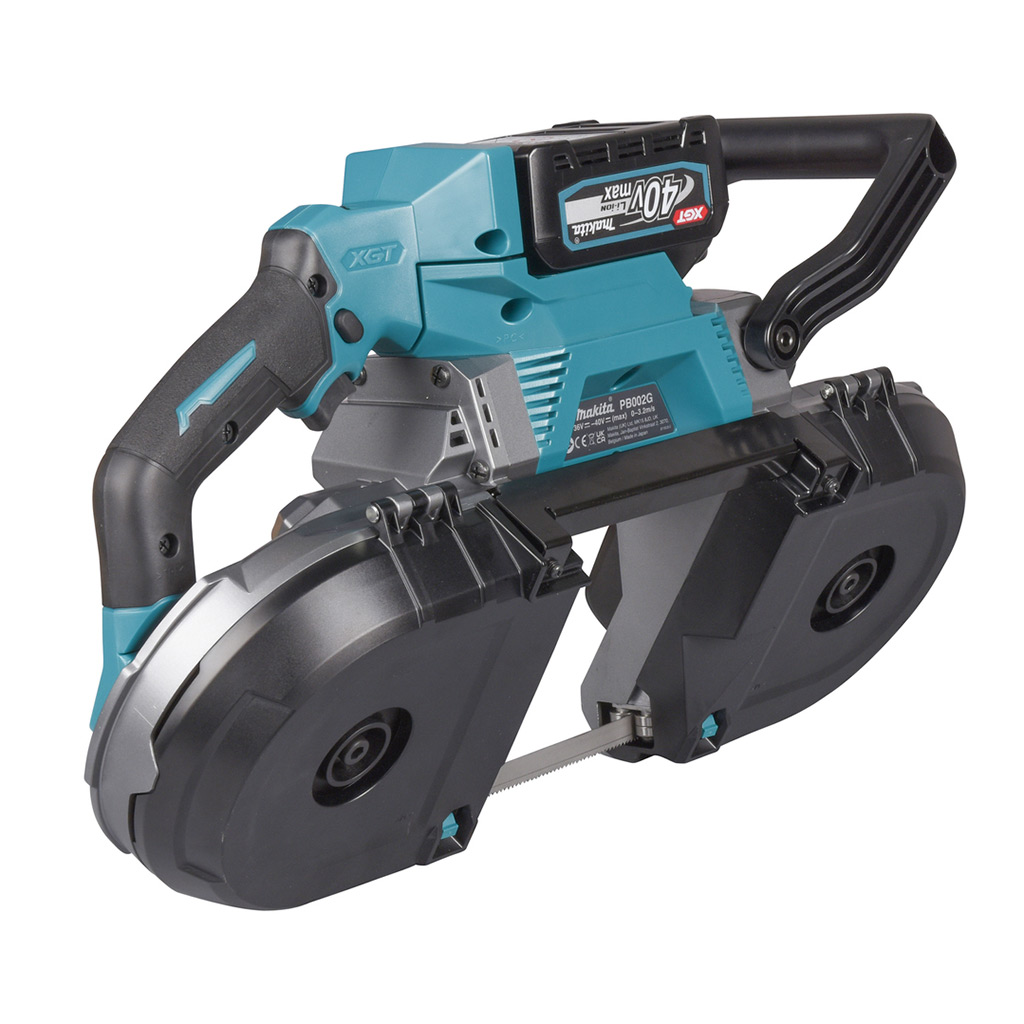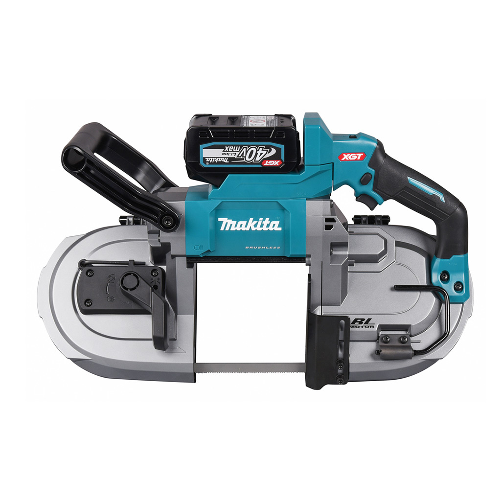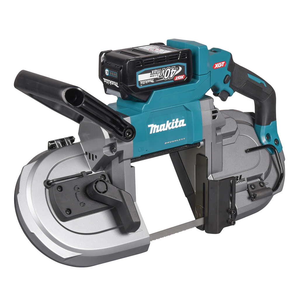 La sega a nastro 40 V Brushless Makita PB002GM201 è fornita con due batterie BL4040 40 V 4,0 Ah, caricabatterie e valigetta.