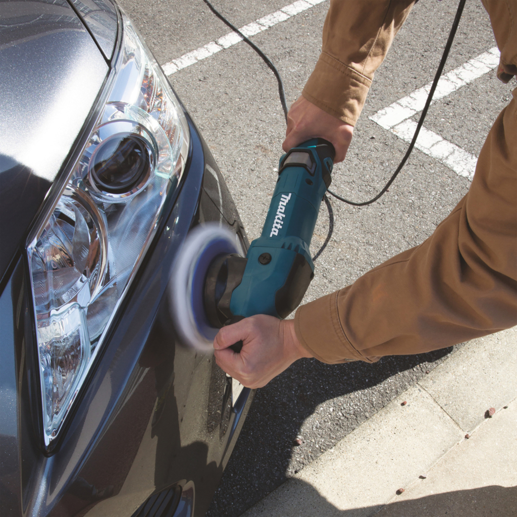 La Levigatrice/Lucidatrice Makita PO6000C è maneggevole con potente motore da 900 W e disco da 150 mm. Dotata di controllo elettronico della velocità, il quadrante della velocità a gradini preimpostato e l’elettronica a velocità costante aumentano l’efficienza sotto carico. La Levigatrice/Lucidatrice PO6000C ha un diametro dell’orbita di 5,5 mm e il suo controllo a doppia azione consente la lucidatura dei graffi e la finitura oltre alla ceratura.
