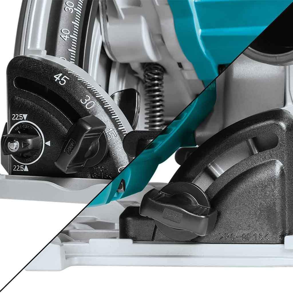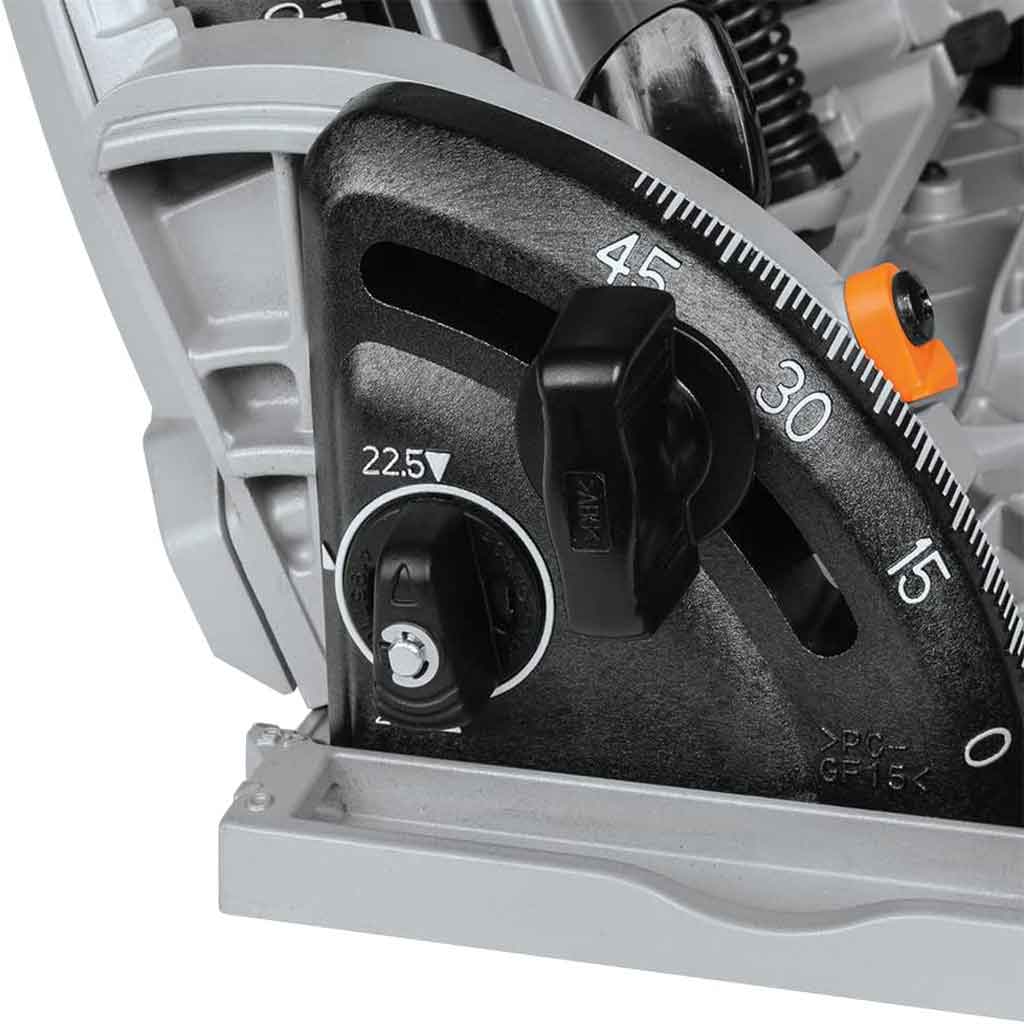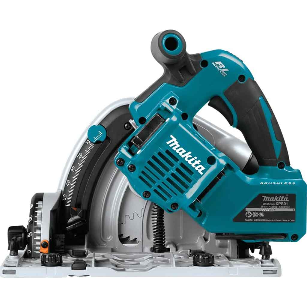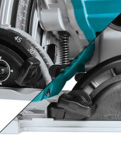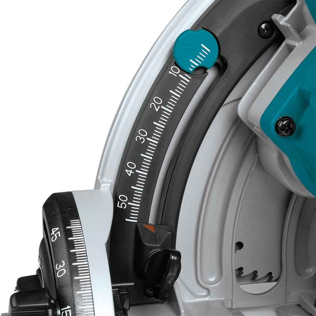 La sega circolare a corrente Makita SP6000J è progettata per tagli precisi, ideale per la posa di complementi d’arredo o pavimentazione con taglio a filo parete. Il motore da 1.300 W con avviamento lento e velocità costante sotto sforzo aiuta per eseguire un’ottimo lavoro grazie anche alla velocità regolabile tra 2200 – 6400 giri/min, regolazione da -1 a 48° con capacità di taglio di 56 mm. La sega circolare SP6000J ha un’ impugnatura ergonomica rivestimento soft grip con protezione dai sovraccarichi e freno a motore. Possibilità collegamento aspiratore. Il Kit Sega circolare e binario è ideale per svariati impieghi ed utilizzi.