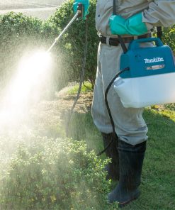 La pompa irroratrice Makita US053DZ, praticissima da utilizzare grazie alla sua alimentazione a batteria, è particolarmente indicata per utilizzo di diserbanti e pesticidi.