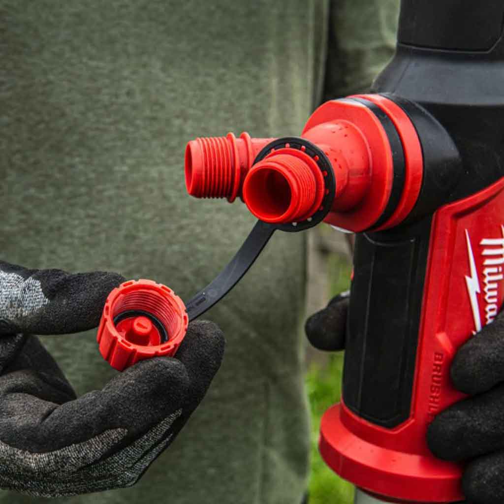 Milwaukee BLSWP-0 include adattatore per trasformare il filetto da maschio a femmina, sdoppiatore per connettere due tubazioni da giardino da ¾”.