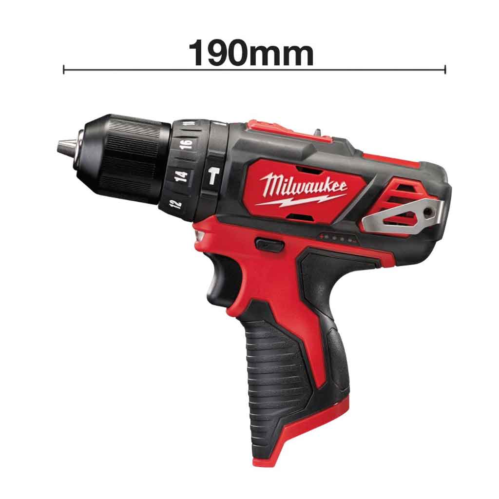 Il Trapano avvitatore compatto con Percussione Milwaukee M12 BPD-0 ha una potenza massima di 30 Nm con impugnatura ergonomica per un maggior controllo ed una presa sicura. Il design compatto e una lunghezza totale di 190 mm consente applicazioni in spazi ristretti dotato di Mandrino in metallo da 10 mm di metallo che assicura un’eccezionale presa sulle punte o sugli inserti.