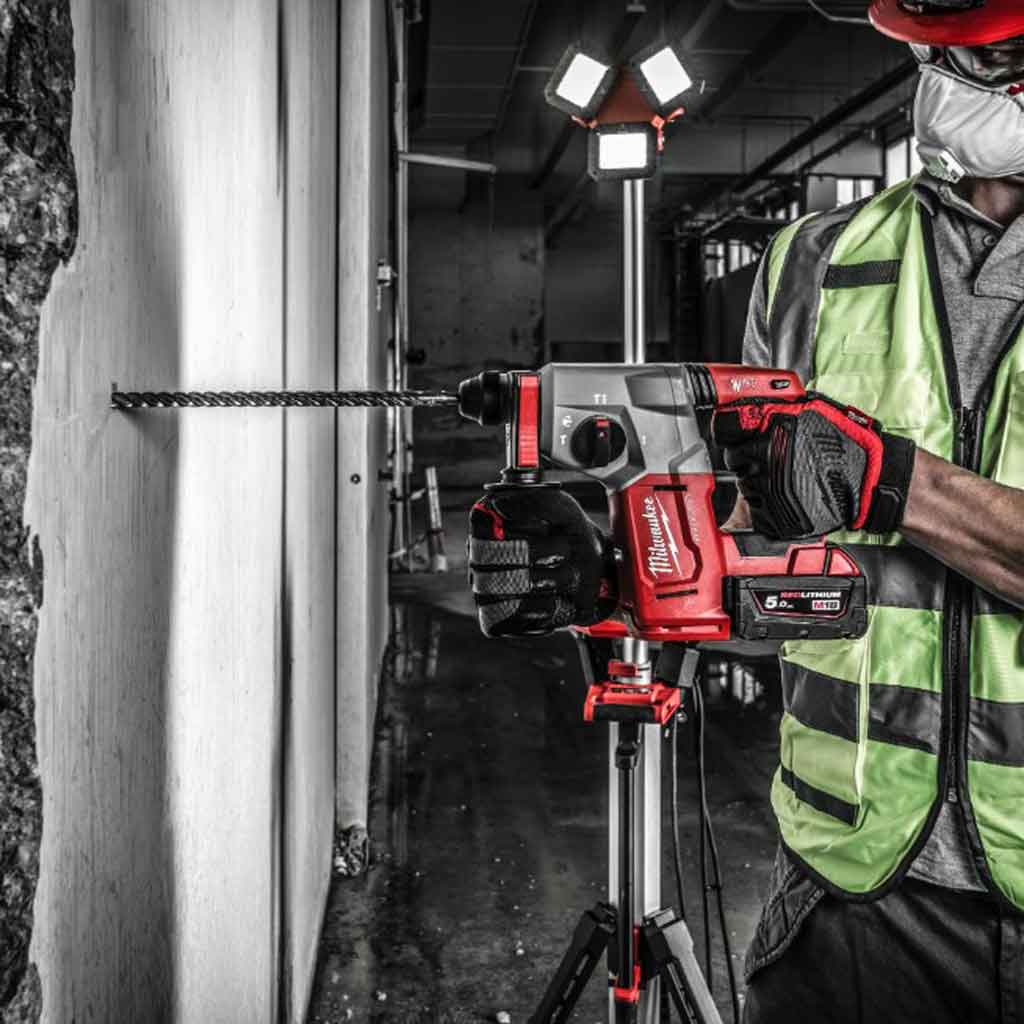 Il Tassellatore SDS-Plus Milwaukee M18 FH è in grado di fornire 2,5 J di energia d’impatto con minime vibrazioni (12,9 m/s²) rendendolo il più rapido della sua categoria per massima produttività. Dotato di 4 modalità di funzionamento: rotopercussione, scalpellatura, rotazione e posizione di folle per orientamento dello scalpello con la scatola ingranaggi in metallo, per una massima resistenza.