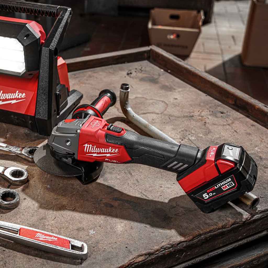La Smerigliatrice angolare Milwaukee M18 FSAG125 è in grado di fornire prestazioni pari a 1200 W con 8500 giri al minuto ottimizzando il taglio. Le dimensioni della testa sono ridotte e l’alloggiamento della batteria è ottimizzato per una massima maneggevolezza.