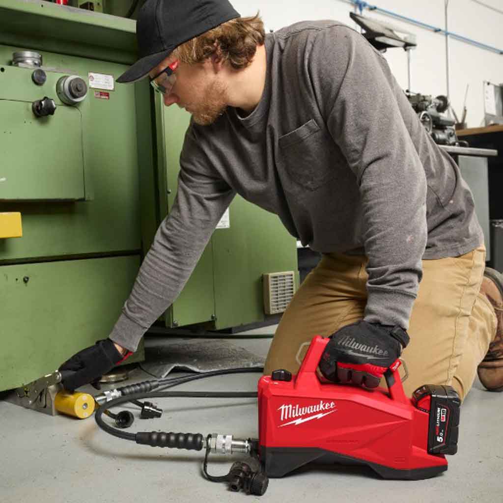 La mini pompa idraulica Milwaukee M18 HMP700-0 alimenta le comuni attrezzature con 700 bar consentono l’utilizzo in spazi ristretti grazie alle sue dimensioni compatte risultando perfetta per il sollevamento e la punzonatura e in ambito automotive, ideale anche per estrarre, divaricare e spaccare dadi.