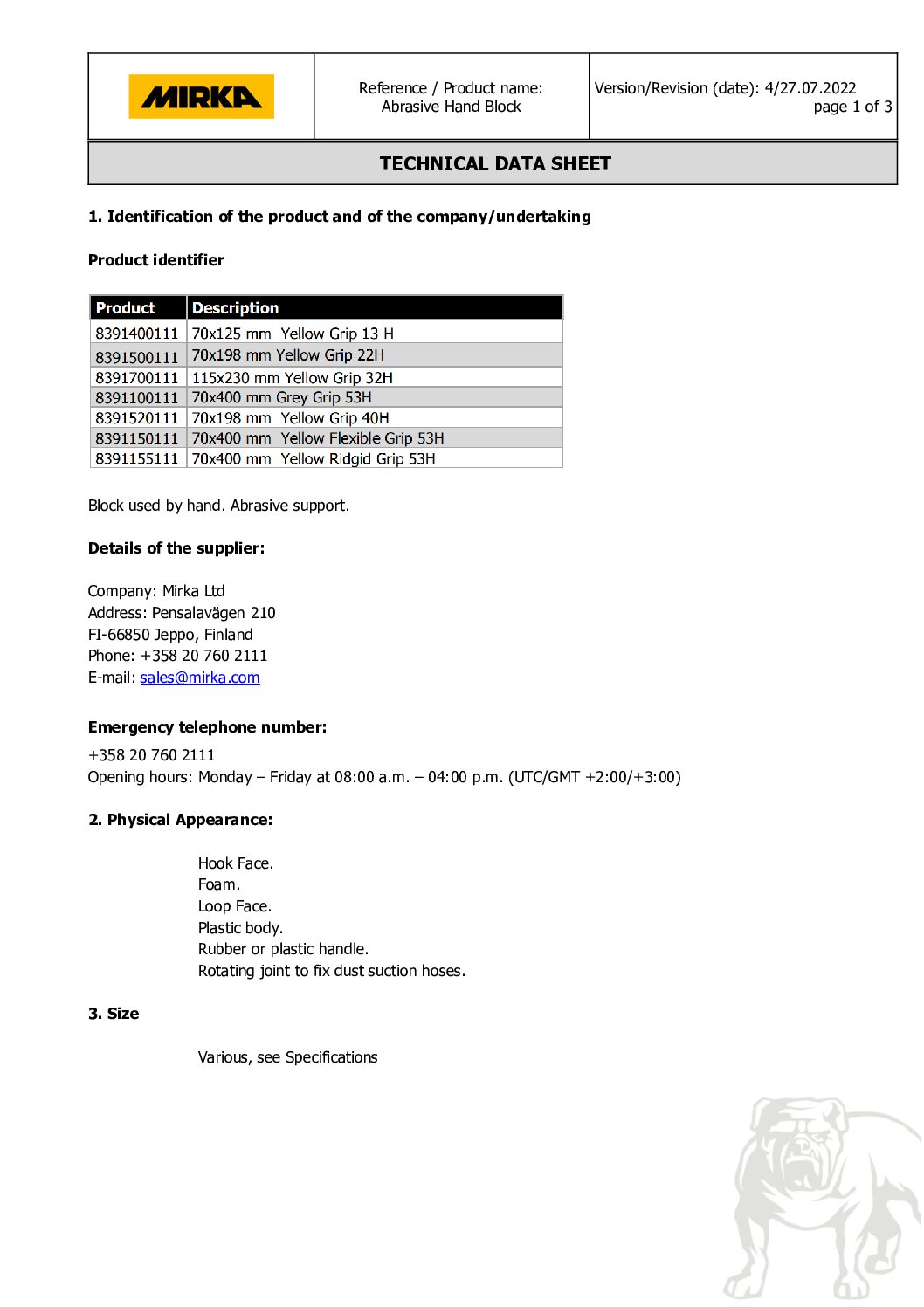 Tampone 70x400mm Grip 53F Giallo