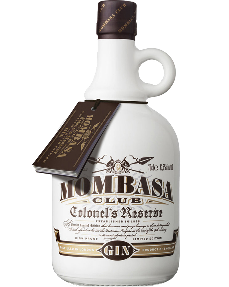 Premium London Dry Gin realizzato da Thames Distillers, che nasce partendo dal tipico metodo batch, in cui viene utilizzato alcool neutro distillato quattro volte. Segue l’infusione di ben 11 gli elementi selezionati che vengono distillati con attenzione isolando nel processo solo il cuore più puro del distillato, dove la concentrazione degli aromi e degli oli essenziali è massima. Prodotto di punta di Mombasa Club, si presenta in una bottiglia colorata di bianco con un design unico e riconoscibile.