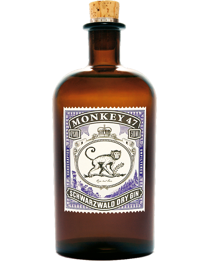 Dry Gin prodotto in Germania dalle Black Forest Distillery, distilleria ai piedi di una delle più belle vette della Foresta Nera, luogo ricco di ingredienti e di mistero. 47 gradi alcolici per 47 erbe e spezie, acqua rigorosamente della foresta nera, doppia distillazione e invecchiamento in contenitori di terra cotta, nessun filtraggio finale. La ricetta viene fatta risalire al comandante della Royal Air Force Montgomery Collins che era di stanziamento alla Berlino del dopoguerra. Qui supervisionò la ristrutturazione di diversi edifici fino a ritirarsi in uno GuestHouse a nord della Foresta nera. Tempo dopo Alexander Stein e Christoph Keller hanno riportato alla luce la ricetta contenuta in una scatola raffigurante la scimmia Max, da cui riprende il nome e l’etichetta del Gin.